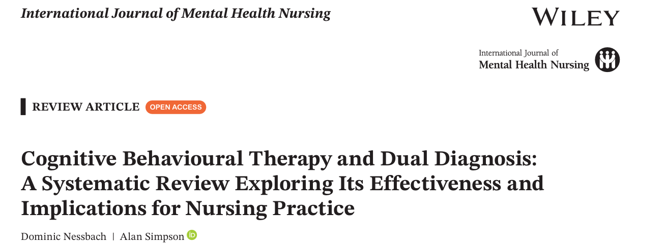 Nessbach, D., & Simpson, A. (2025). Cognitive Behavioural Therapy and Dual Diagnosis: A Systematic Review Exploring Its Effectiveness and Implications for Nursing Practice. International Journal of Mental Health Nursing, 34, e70129. https://doi.org/10.1111/inm.70129