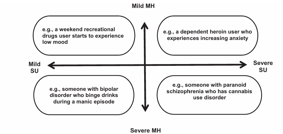 图1:双重诊断的范围,改编自卫生部双重诊断良好实践指南(2002)