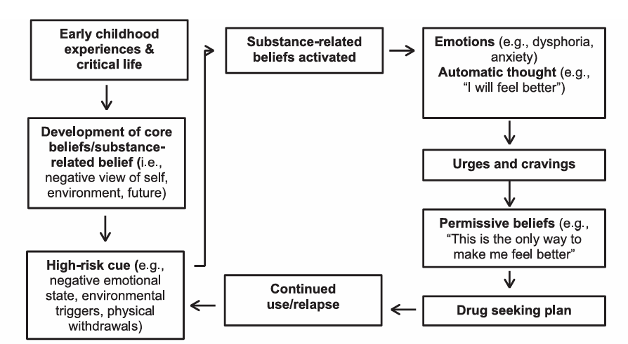图2:物质滥用的认知治疗模型,改编自Beck等人(1993)