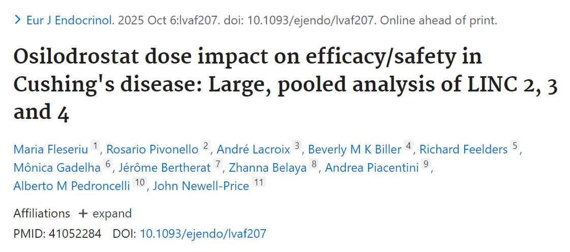 库欣病是由垂体促肾上腺皮质激素腺瘤引起的慢性高皮质醇血症,常伴随多种合并症、生活质量下降及死亡率增加。手术是首选治疗,但约三分之一患者术后未缓解或复发,药物治疗成为关键选择。奥西洛司他作为一种强效口服11β-羟化酶抑制剂,能有效抑制皮质醇合成。近期,发表在European Journal of Endocrinology杂志的一项研究,对奥西洛司他的剂量策略、疗效与安全性进行系统解读。