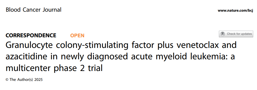 Wang, H., Wang, X., Shi, T. et al. Granulocyte colony-stimulating factor plus venetoclax and azacitidine in newly diagnosed acute myeloid leukemia: a multicenter phase 2 trial. Blood Cancer J. 15, 184 (2025). https://doi.org/10.1038/s41408-025-01389-4