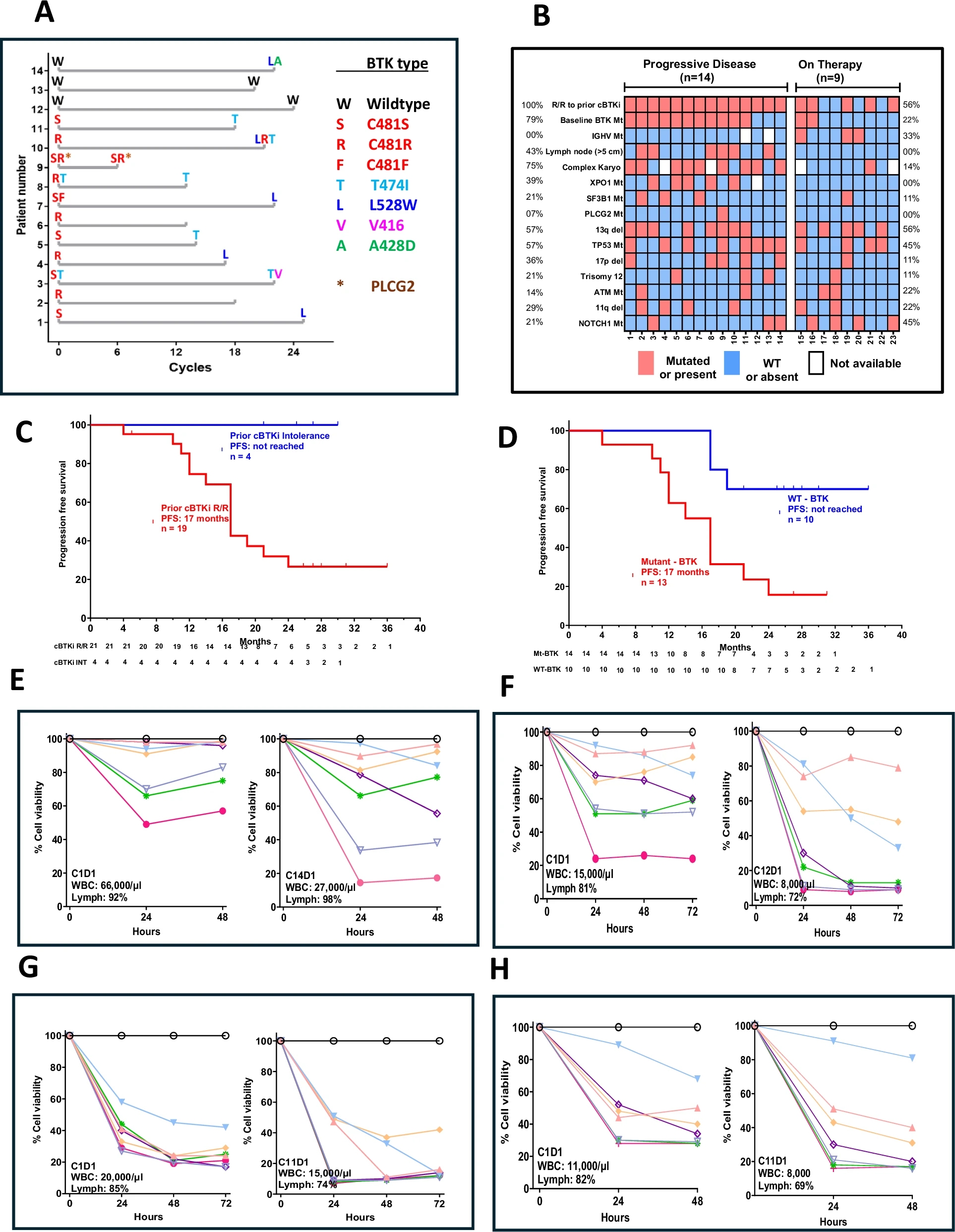 图:与吡托布鲁替尼治疗进展性疾病的患者特征及细胞对其他靶向药物作用的敏感性