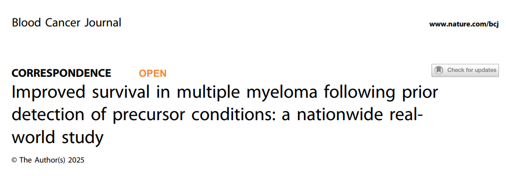 Choi, S., Park, SS., Lee, C.H. et al. Improved survival in multiple myeloma following prior detection of precursor conditions: a nationwide real-world study. Blood Cancer J. 15, 185 (2025). https://doi.org/10.1038/s41408-025-01395-6