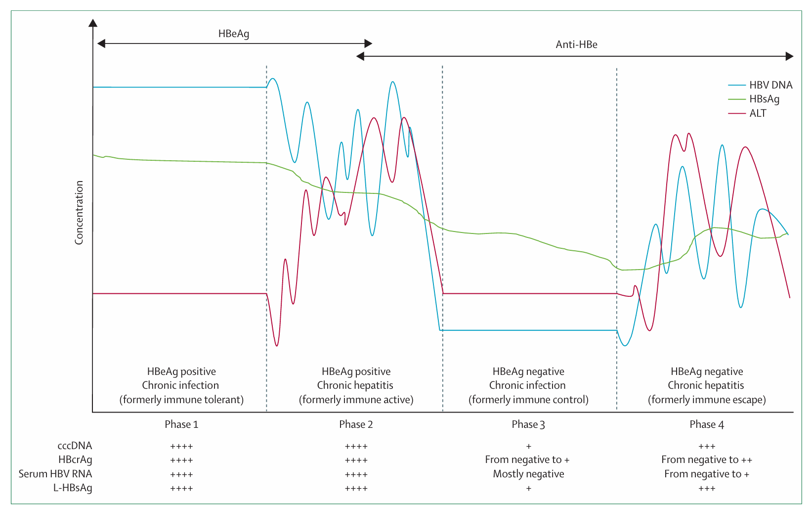 图1:慢性乙型肝炎的四个疾病阶段