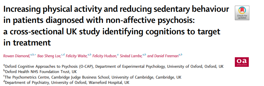 Diamond, Rowan et al.Increasing physical activity and reducing sedentary behaviour in patients diagnosed with non-affective psychosis: a cross-sectional UK study identifying cognitions to target in treatment.eClinicalMedicine, Volume 90, 103624