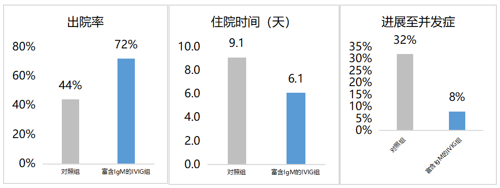 图5. 富含IgM的IVIG辅助治疗新生儿脓毒症可显著提高出院率,缩短住院时长并改善临床进程