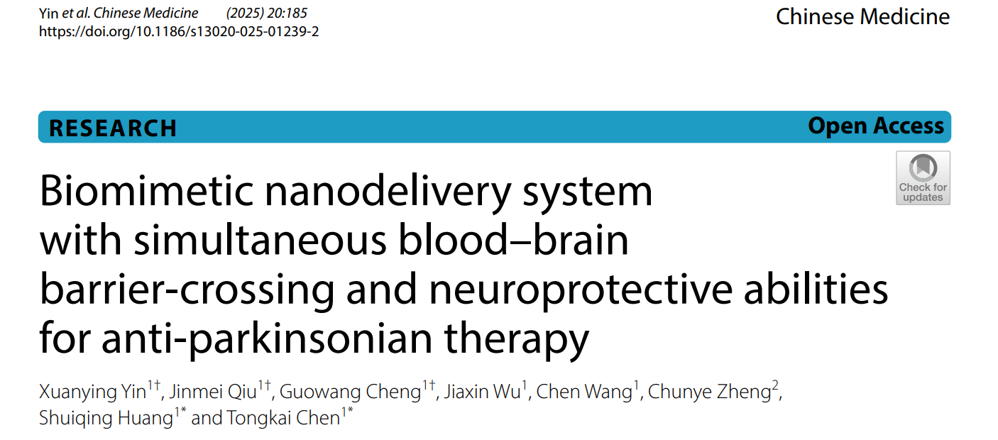 Yin, X., Qiu, J., Cheng, G. et al. Biomimetic nanodelivery system with simultaneous blood–brain barrier-crossing and neuroprotective abilities for anti-parkinsonian therapy. Chin Med 20, 185 (2025). https://doi.org/10.1186/s13020-025-01239-2