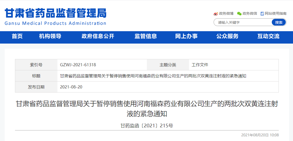 通知提到,经甘肃省药品检验研究院检验,标识药品生产企业为河南福森药业有限公司生产的双黄连注射液(批号分别为2009023、2010131)结果不符合国家药品标准规定。 通知要求,有关监管部门迅速组织力量通知辖区药品经营企业、使用单位,立即停止销售、使用上述两个批号的双黄连注射液,督促指导药品经营企业、使用单位下架封存,配合河南福森药业有限公司和上游企业做好不合格药品的全面召回工作。 多地发文,一批常用药停售召回 笔者整理发现,除甘肃外,近期安徽、四川等地也发布了类似的通知,要求停售召回一批药,涉及美沙拉秦肠溶片、奥美拉唑肠溶胶囊等。 几天前,四川省药监局发布通告称,经绵阳市食品药品检验所等3家药品检验机构检验,标示为山西津华晖星制药有限公司等3家药品生产企业生产的3批次药品不符合规定。 在这些不合格药品中,一种为制剂,为奥美拉唑肠溶胶囊;另外两种为中药饮片,分别为龙眼肉、伏苓皮。具体如下图: